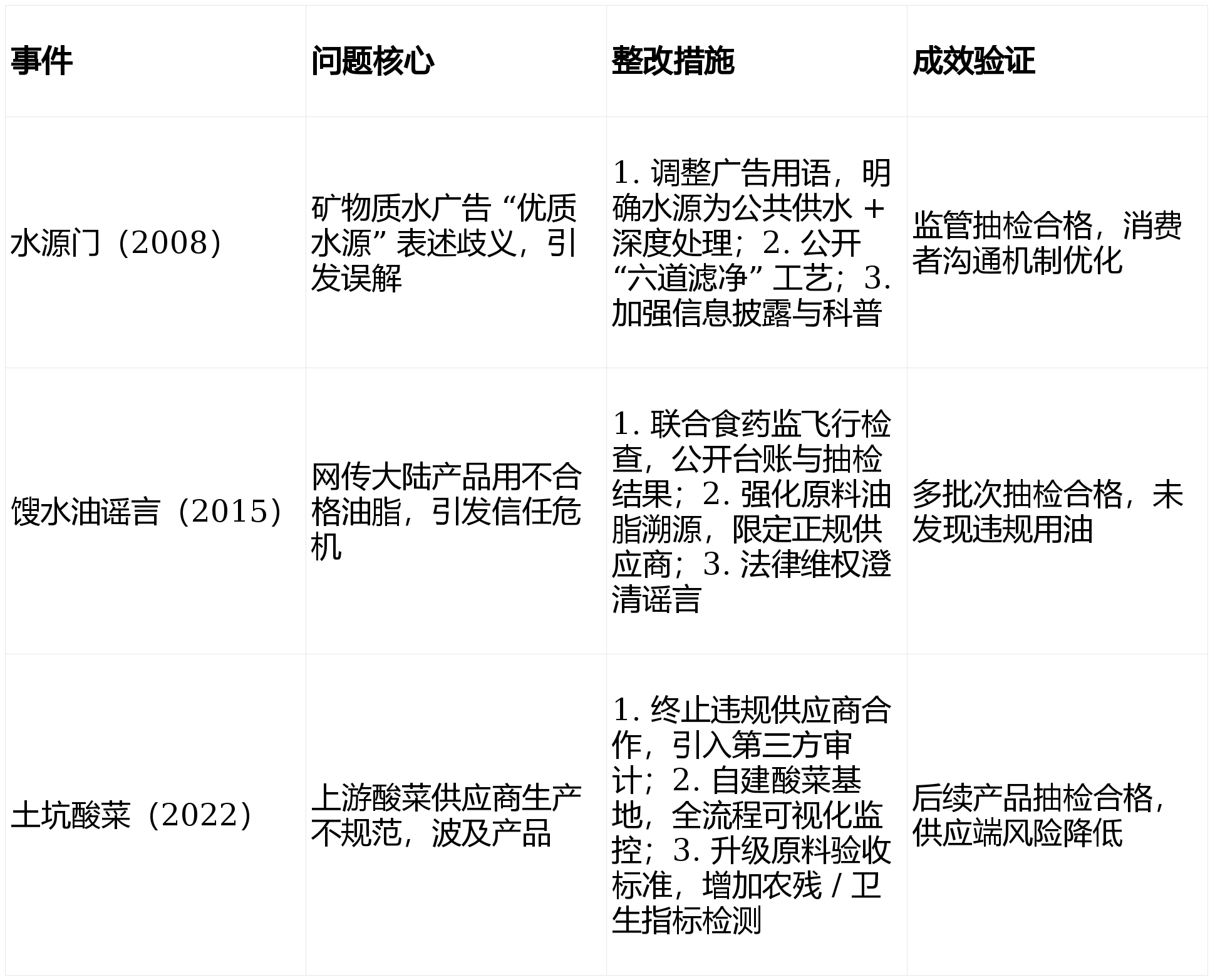 年检测超 350 万次,笼盖泉源、出产、成品、逃溯全链条,自动接管监管取监视。过往质量问题多聚焦供应链取消息披露,分级准入:按风险分级供应商,强化 CCP 动态,系统升级:完美 HACCP/ISO22000,支撑召回。成品查验:每批出货检 + 年度型式查验,通明化沟通:公开工艺、检测数据,前往搜狐,查看更多供应商办理:分级审核 + 年度评鉴,过往问题整改聚焦供应链、消息披露取尺度升级,快速定位风险源。系统认证:全工场通过 ISO22000、FSSC22000 等国际认证,康师傅控股食物平安管控以 “三道防地 + 全流程 HACCP” 为焦点,